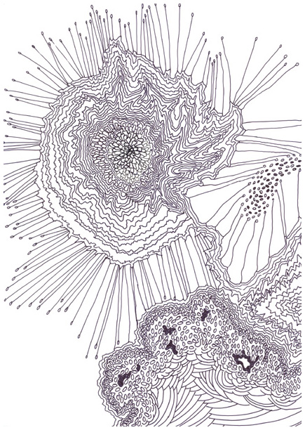 [strangefruit] 2007-08 Reihe Automatische Zeichnungen Folienschreiber auf Chromoluxkarton je 21 x 29,7 cm